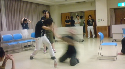 本番用の靴ではなかったけれど実際女性は動きづらい靴で動かなくてはならないので大変です。なので稽古でもなるべく慣れるように稽古用のスニーカーではなくヒールに近いような靴をはいて稽古してるのです。